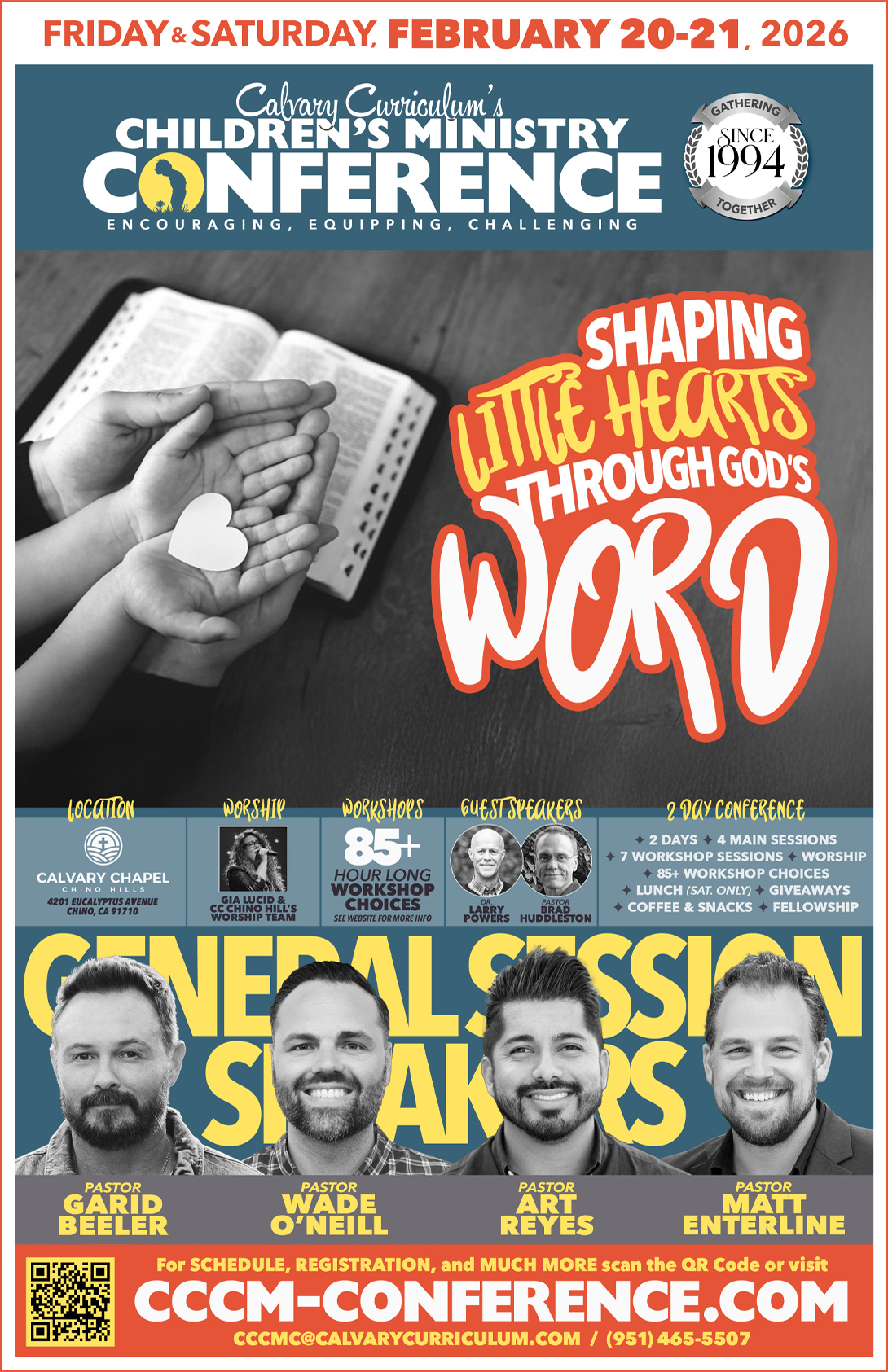 In 1994, Pastor Larry Enterline began coordinating Children’s Ministry Conferences at Calvary Chapel Costa Mesa to help equip and encourage teachers, leaders, and pastors who minister to children. Since that time, these annual conferences have been held at several different churches. Again this year, Calvary Curriculum’s 29th annual Children’s Ministry Conference will be held at Calvary Chapel Chino Hills (see map below).